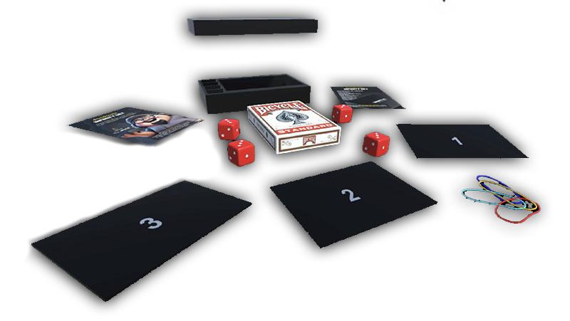 En este Set encontrarás otros objetos como gomas elásticas o dados, con la idea de que puedas abarcar también esos juegos publicados por Dani, donde use algo más que cartas.